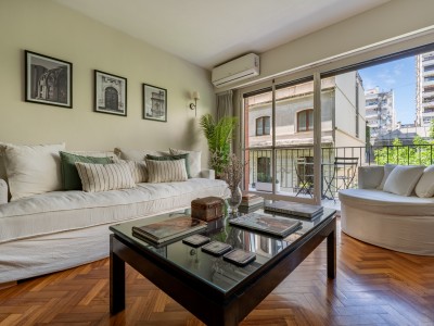 Apartamento de dois dormitórios localizado no coração da Recoleta. Esta elegante área é uma das mais seguras da cidade e uma das mais pitorescas graças a seus edifícios de arquitetura europeia. Esta região está cercada por hotéis cinco estrelas, restaurantes de nível internacional, parques, cafeterias e lojas.